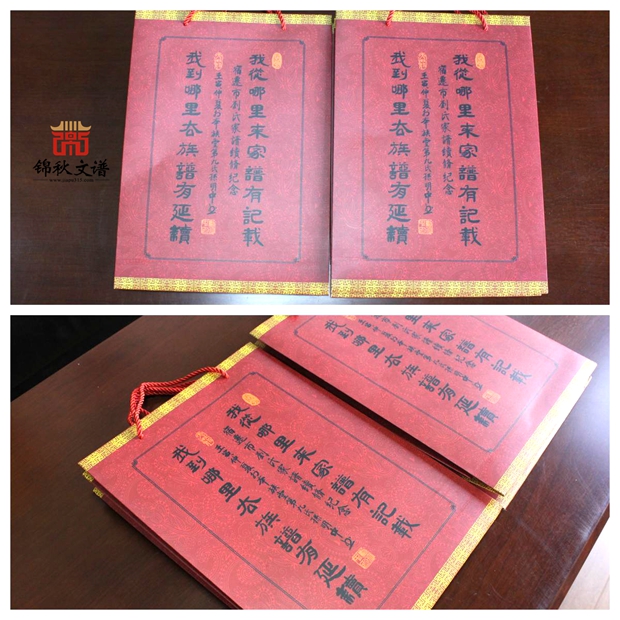 在劉氏家族的要求下,錦秋文譜為其家族設(shè)計了手提袋。整體以紅色為主,黃色為輔,字體采用黑色宋體的設(shè)計。正面寫著:“劉氏族譜,敦厚堂記,江蘇省宿遷市劉氏家族續(xù)修委員會,二〇二三癸卯年續(xù)修”的字樣。反面寫著:“我從哪里來家譜有記載,我到哪里去族譜有延續(xù)。宿遷市劉氏家譜續(xù)修紀(jì)念,壬寅仲夏本族堂第九氏孫明中立?!笔痔岽闹饕饔檬菫榱饲迕骷雷孢^程中,更好的為族人頒發(fā)族譜 ,以示重視。
