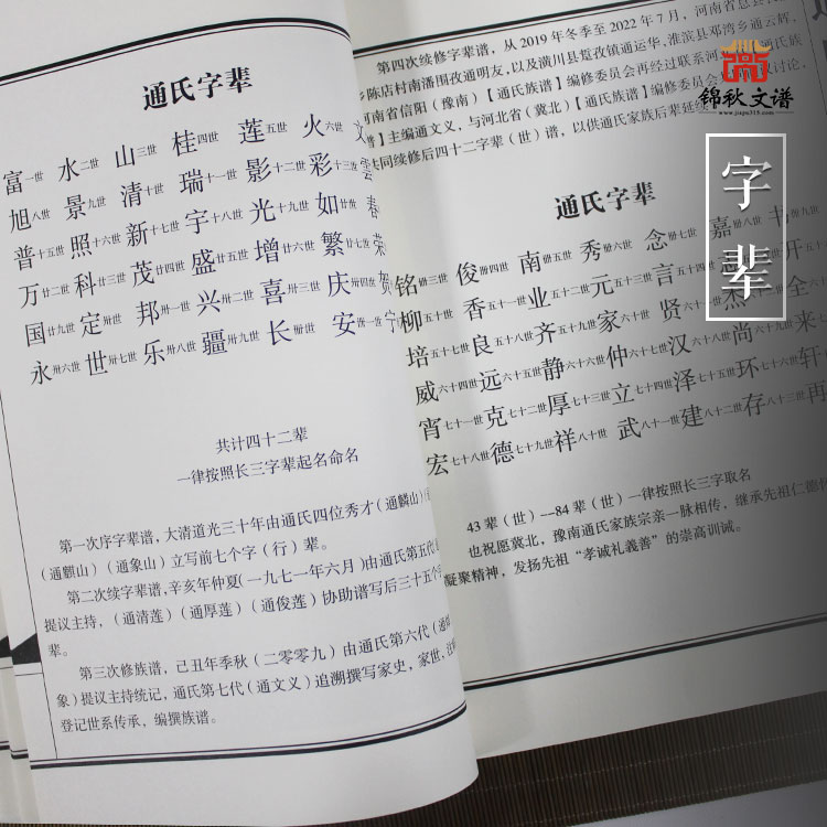 參天大樹(shù)必有其根,萬(wàn)里江河必有其源。普天之下,炎黃子孫,一脈相傳。說(shuō)世系、道宗族、辨親疏,以延宗親之道。國(guó)有史、縣有誌、族有譜,同為一理,此為通氏家族修譜之初衷。日前,《通氏族譜》的編印工作已經(jīng)完成,采用宣紙印刷,一函兩冊(cè),彌足珍貴!