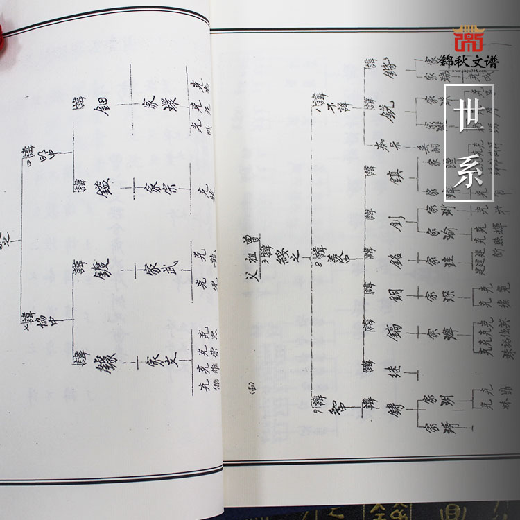 一、本譜采用世系圖、簡(jiǎn)況、人物傳記與簡(jiǎn)介的結(jié)構(gòu)編排家譜內(nèi)容。編輯格式選用圖表對(duì)照橫排牒記式。印刷為制版油墨膠印,加厚宣紙線(xiàn)裝本。