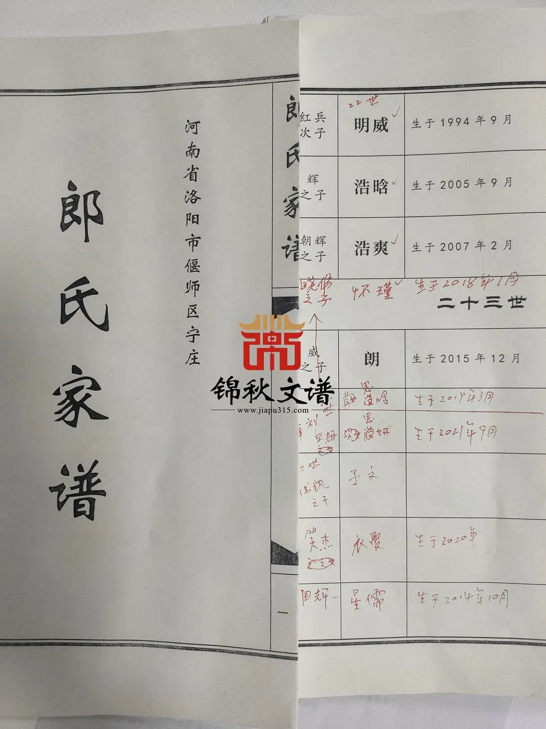 編修進展:河南省洛陽市偃師區(qū)寧莊郎氏家譜二校稿已郵寄。
