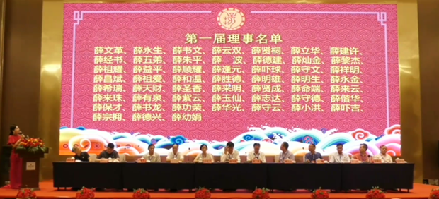 2023年6月17日,福清市姓氏源流研究會薛氏委員會舉行了成立大會,時隔一月有余,于7月23日,福建省姓氏源流研究會薛氏委員會成立大會暨首屆會員代表大會在創(chuàng)元大酒店隆重舉行。