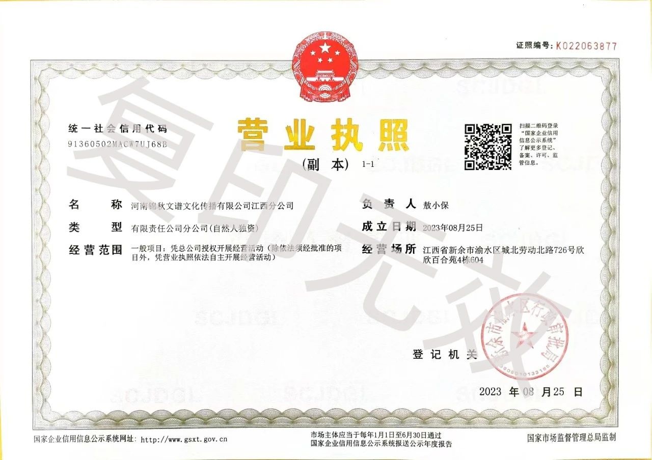 (中華家譜館江西分館營(yíng)業(yè)執(zhí)照)
